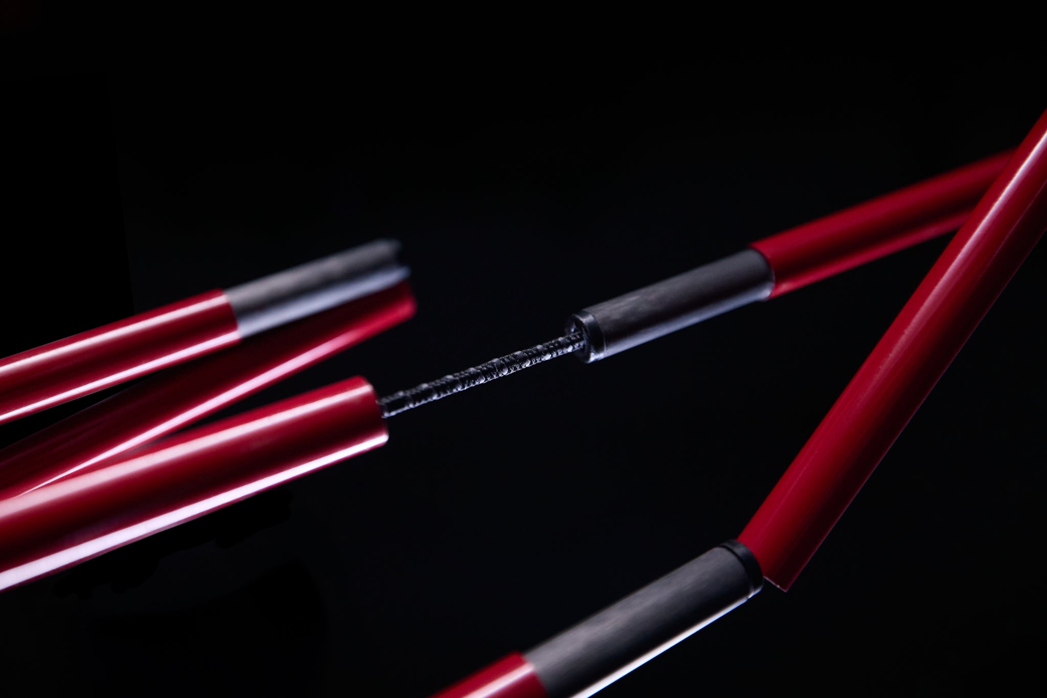 Les arceaux Carbon_X™, développé sur mesure pour Samaya, sont entièrement conçus en carbone (sections et jonctions), évitent les contraintes liées aux assemblages multi-matériaux. Leur construction en fibres drapées limite les échardes en cas de rupture, facilite la réparation sur le terrain et permet un contrôle visuel rapide grâce au contraste rouge/noir des éléments.